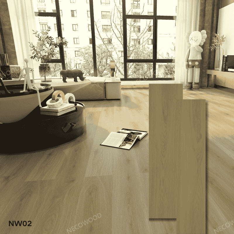 Lantai SPC Necowood direka bentuk untuk mengungguli persaingan dengan rintangan berimpak tinggi, tekstur yang menakjubkan dan pilihan lapisan bawah yang mengurangkan bunyi.