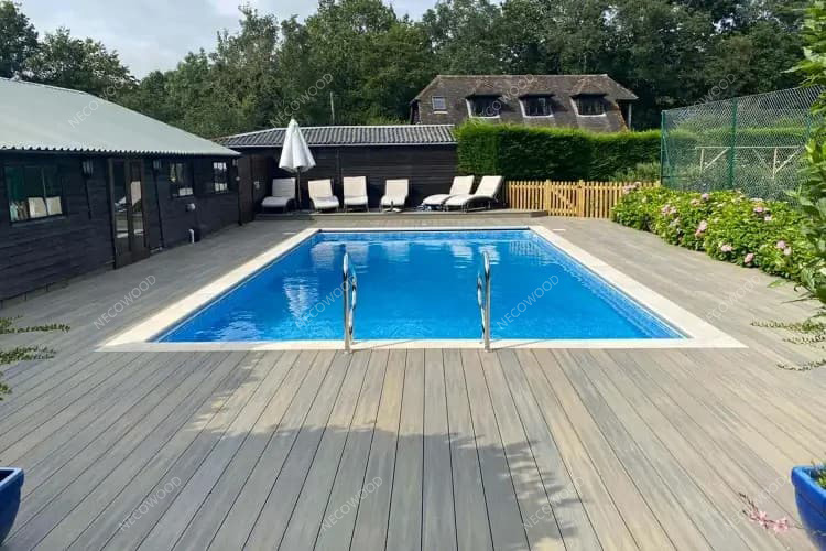 Dengan pemilihan warna yang luas termasuk kelabu, kayu ringan, dan coklat yang mendalam, Necowood membantu arkitek dan pereka membuat persekitaran kolam renang moden dan klasik. Decking kelabu yang dipasangkan dengan air kolam biru adalah salah satu kombinasi yang paling popular dalam projek perhotelan baru -baru ini.